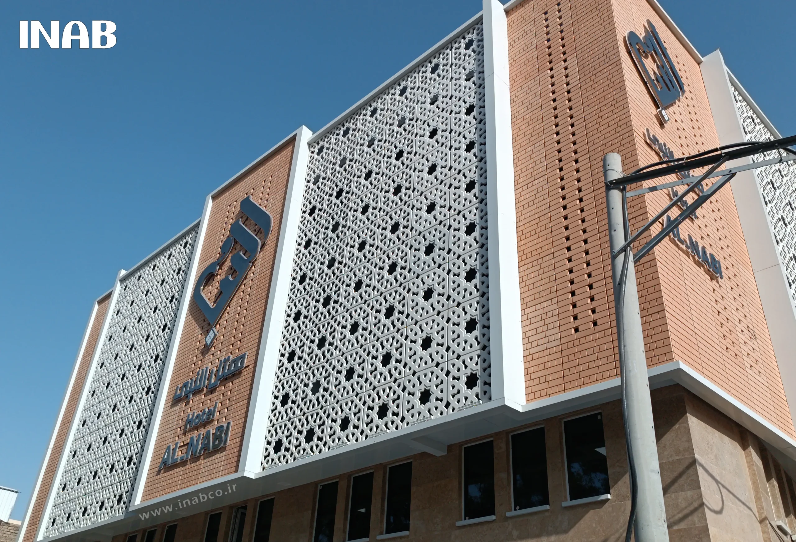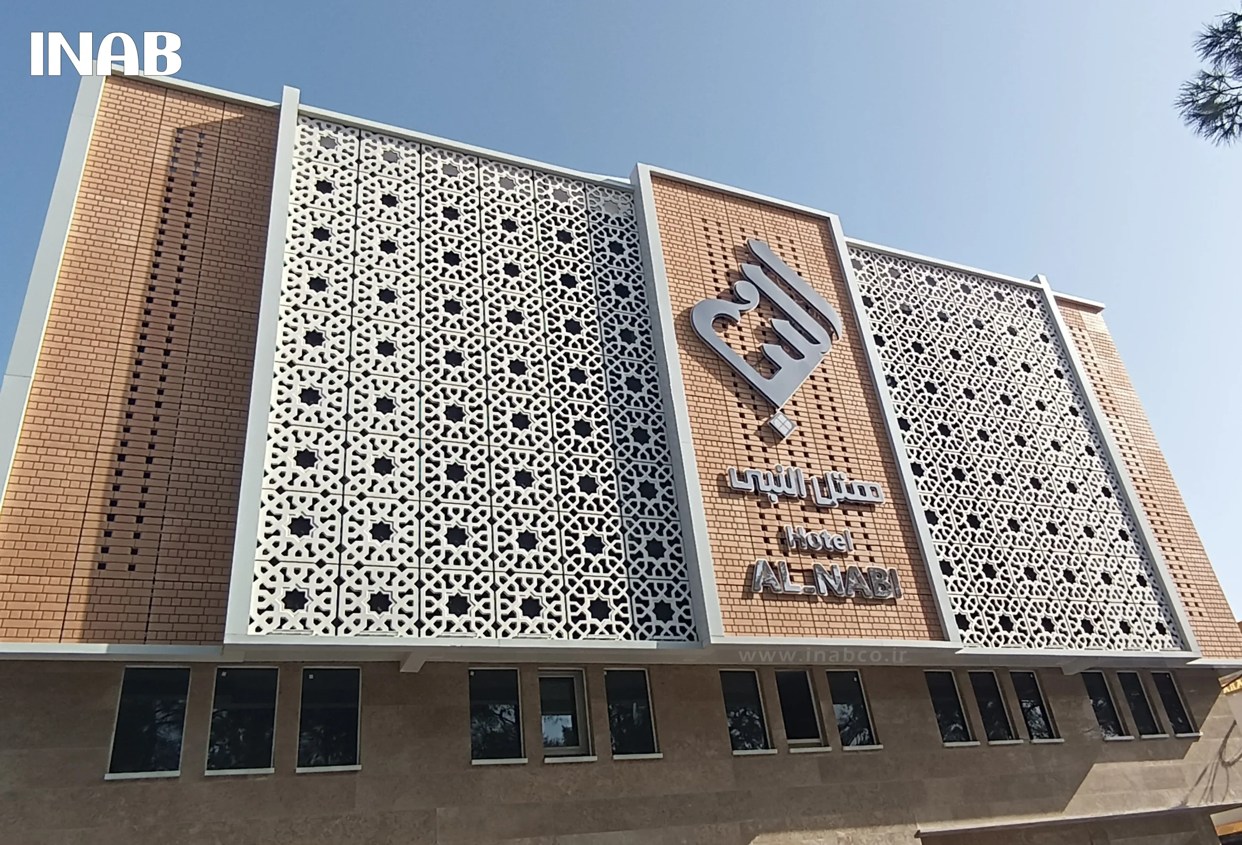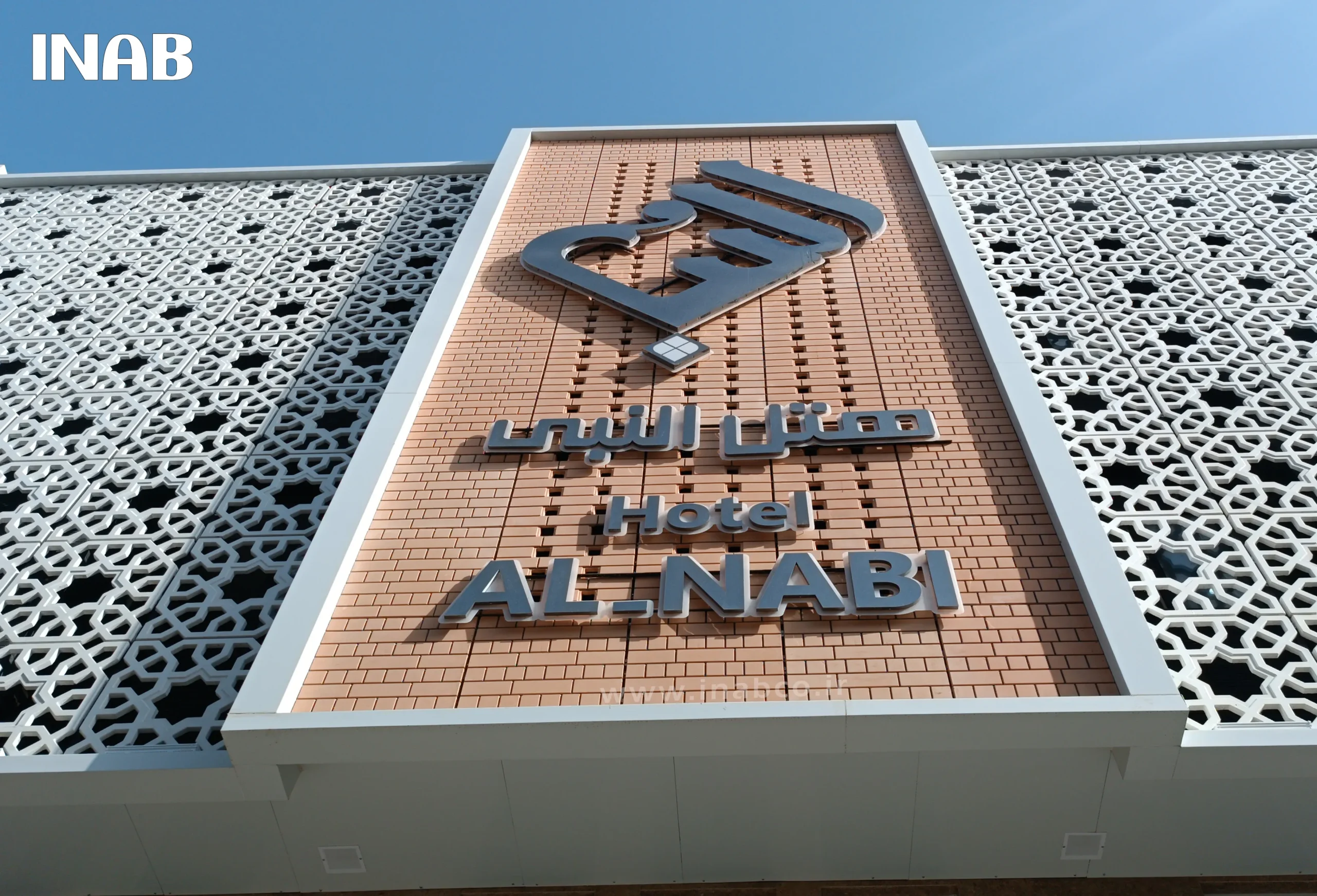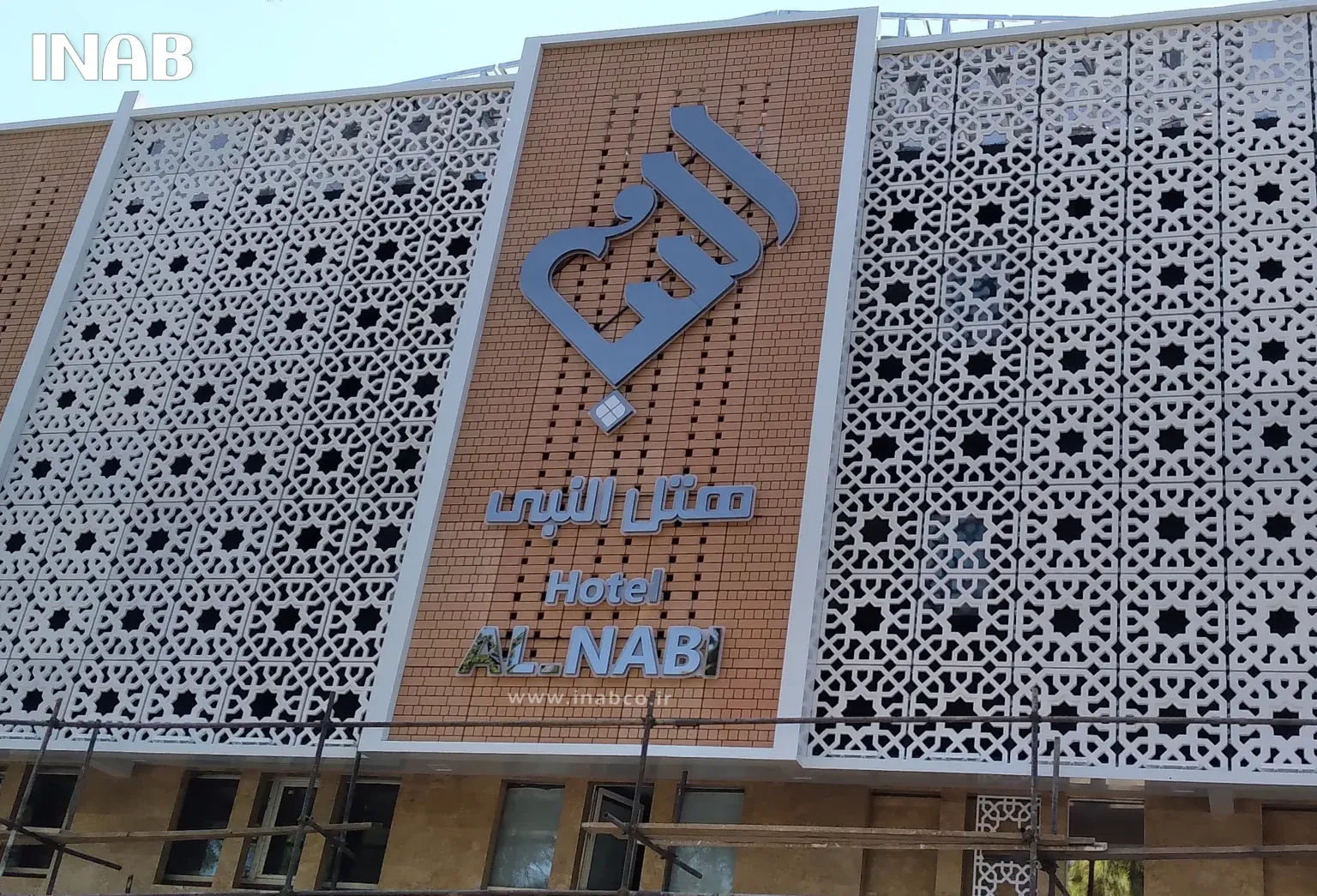 The brick-effect panels produced for this project by INAB were manufactured and installed in both perforated and non-perforated forms. This design diversity gave the Al-Nabi Hotel façade distinctive and appealing features. The perforated panels not only provided visual elegance but also contributed to natural ventilation and reduced thermal loads, while the non-perforated panels created a dense and seamless architectural appearance.