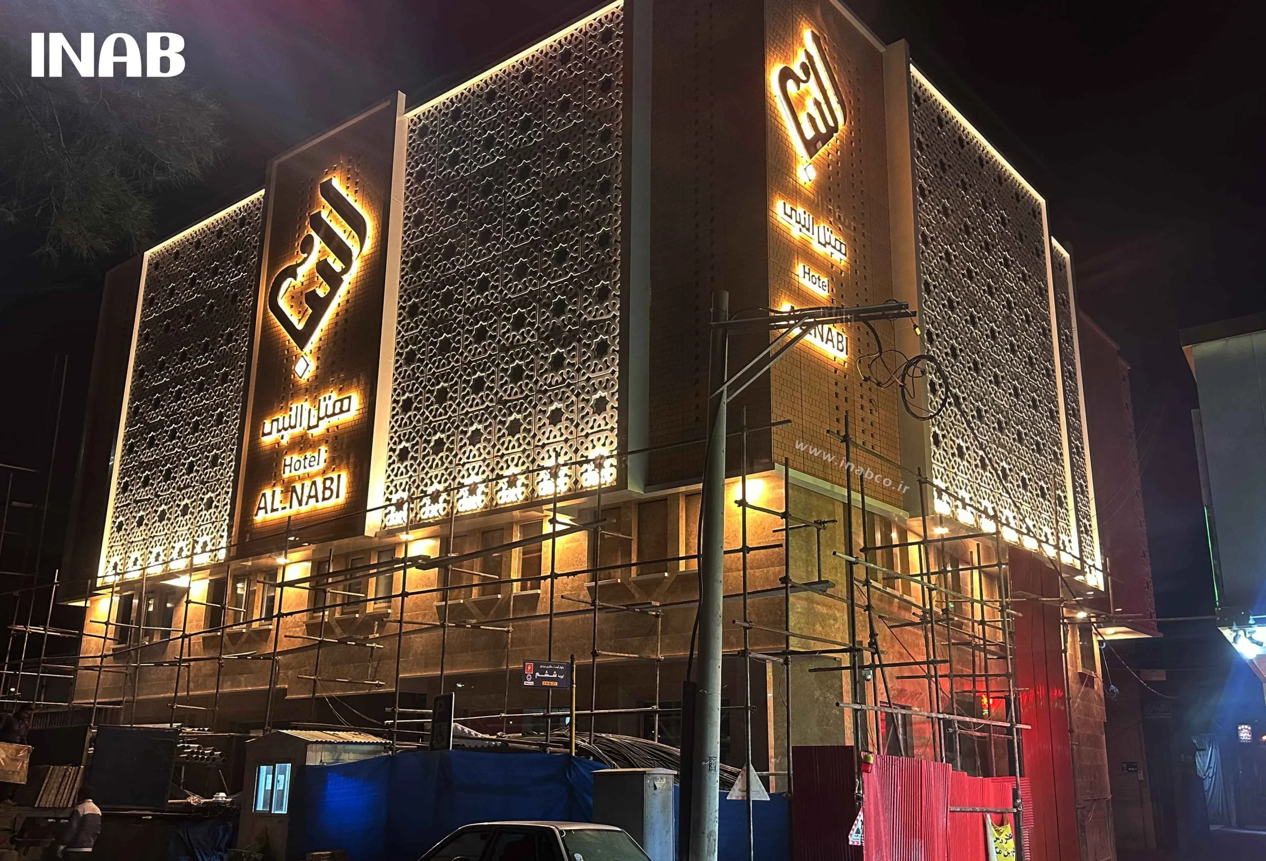 Al-Nabi Hotel, located in the city of Qom, was designed and executed by Engineer Dehshikhi with a distinctive style and unique character. The project introduced a modern and elegant façade to the hotel, breathing new life into its architecture through the use of innovative materials and advanced techniques.