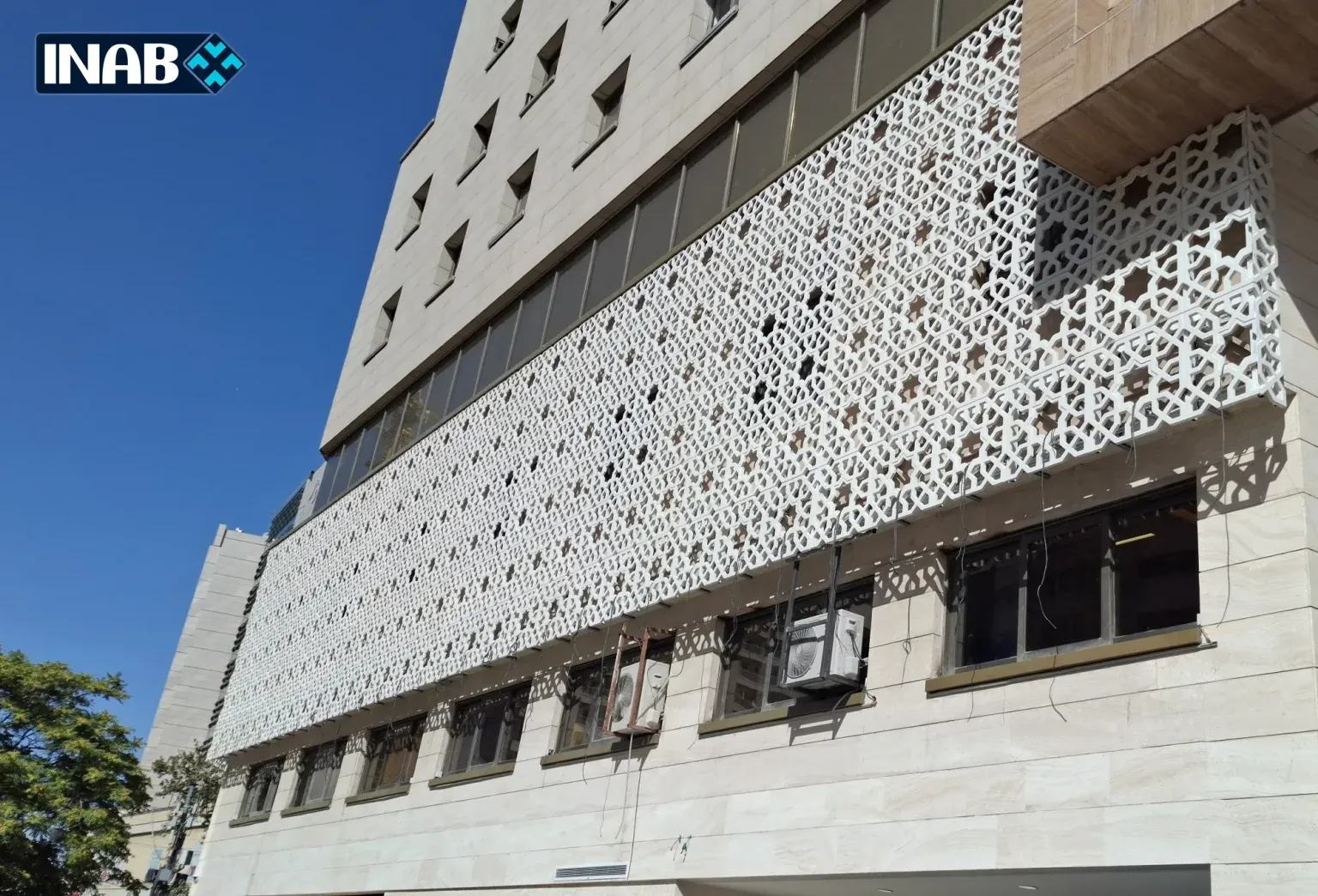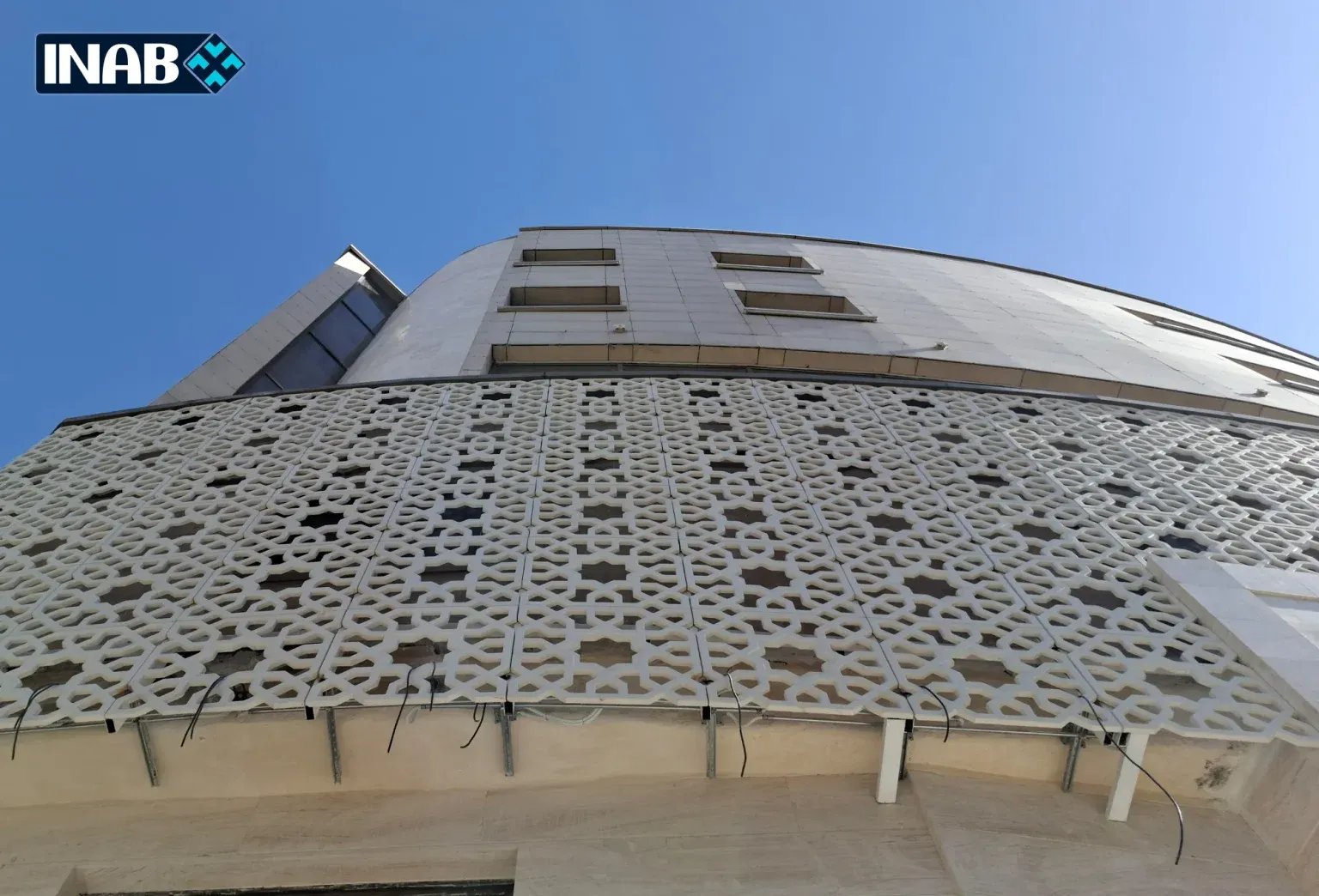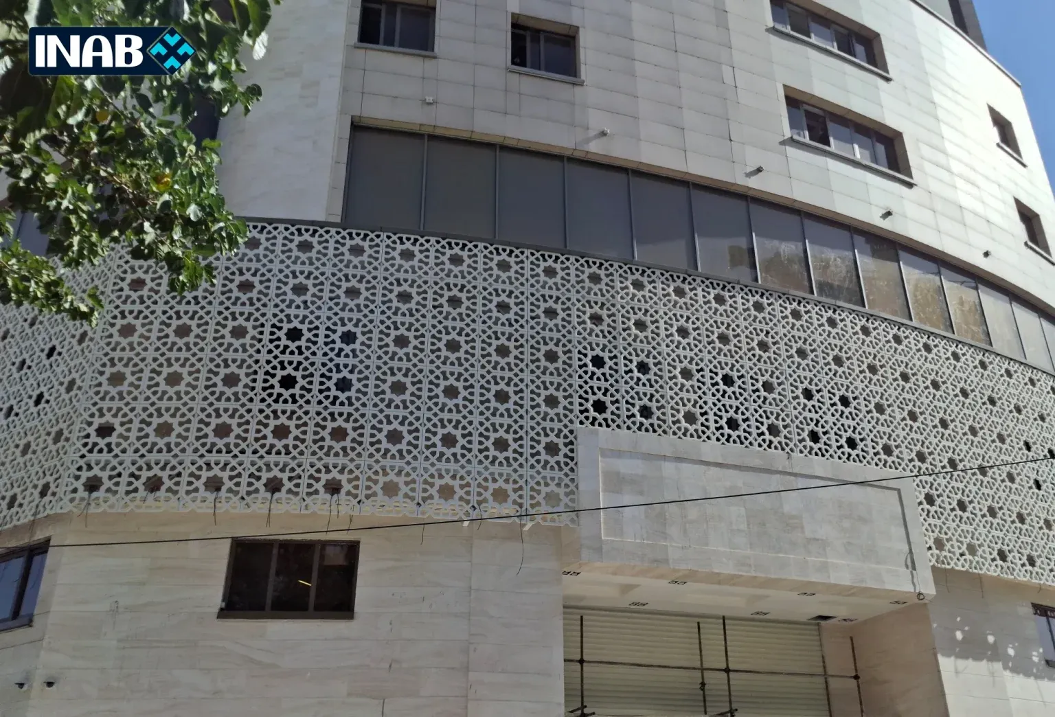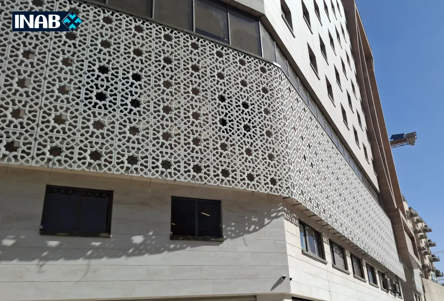 The ongoing Bahar Hotel project in Mashhad has been designed and executed using GFRC in various sections. The “Taban” design has been employed in this project, featuring curved patterns and a distinctive layout that gives the building a dynamic and modern appearance.