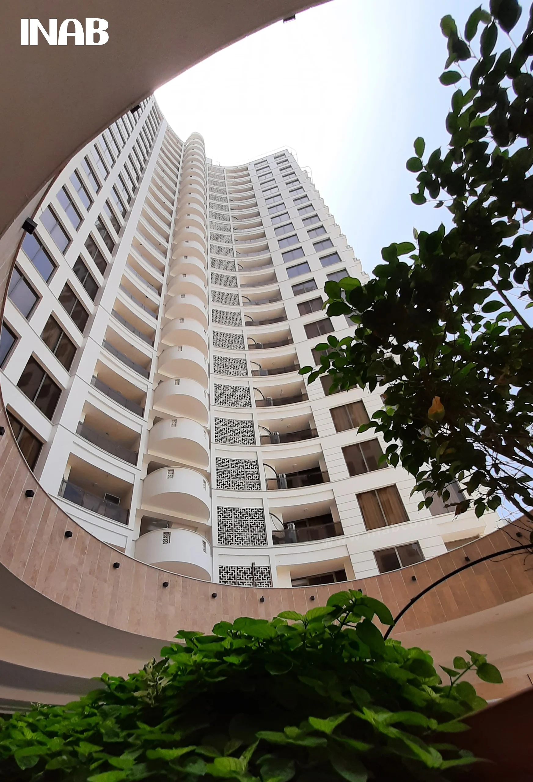 In addition to its striking appearance, this beautiful structure provides the best amenities and facilities to guarantee the comfort of its residents, meeting the expectations of even the most discerning clients. The façade of this project incorporates Inab GFRC panels in the “Mehraz” design, measuring 80×80 cm in a bone-white color, installed with Inab’s exclusive execution method, further enhancing the project’s beauty and quality.